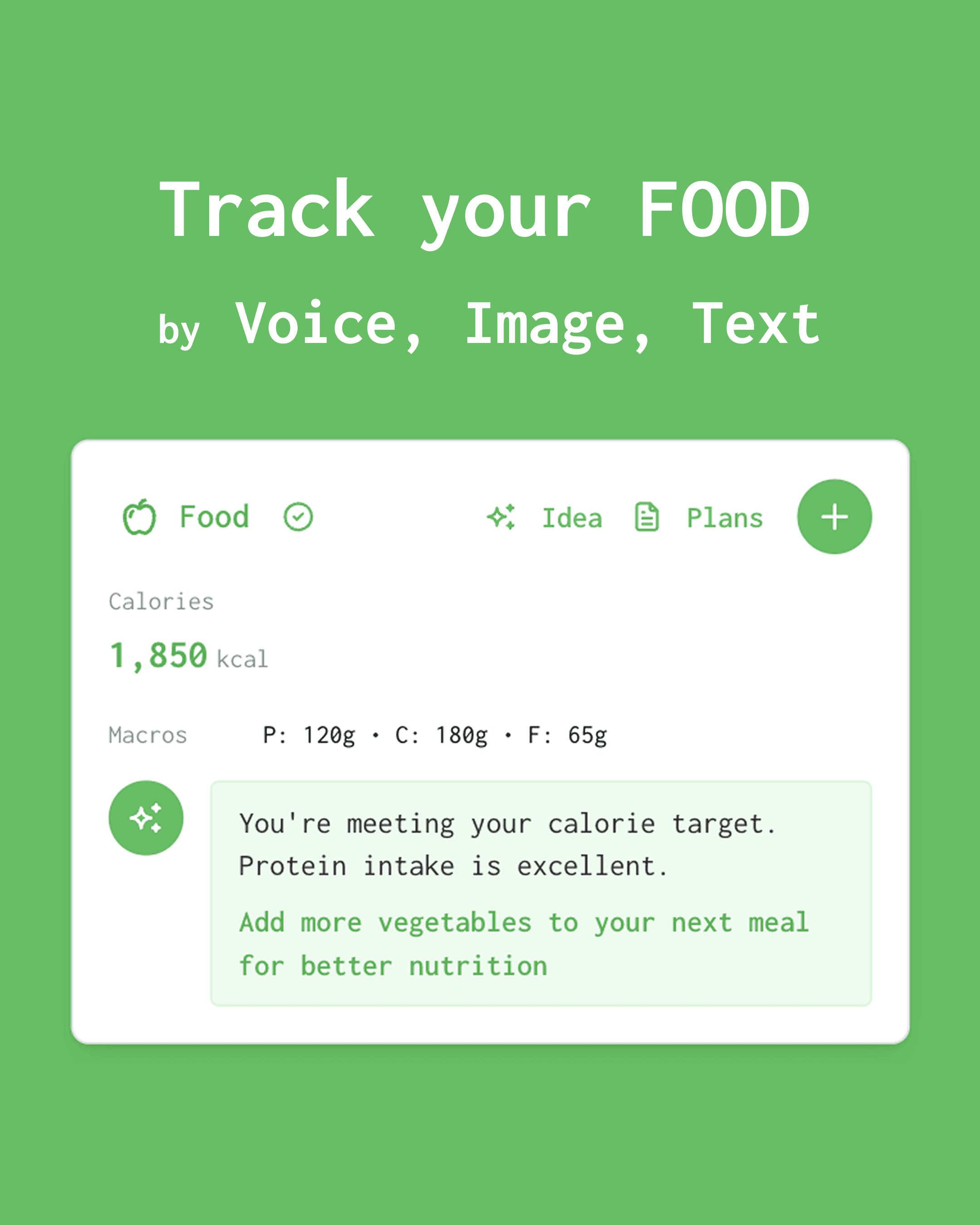 Text, voice, or photo. Meals, workouts, mood, sleep - done.
